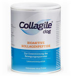 Für einen gesunden Bewegungsapparat, können wir Collagile dog empfehlen. Das weissliche Pulver ist geschmacksneutral und lässt sich dem Futter gut beimischen. Natürlich ist ein sorgfältig ausgesuchtes Futter, die wesentliche Grundlage. Doch wenn bereits Auffälligkeiten bestehen, kann dieses Pulver unterstützend sein. Auch Grünnlippige, MSM oder Chondroitensulfate, leisten einen Beitrag, je nach Fall.