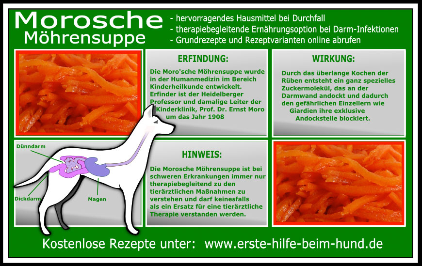 Die Morosche Mörensuppe ist eine Wohltat für den Hundedarm, auch bei Durchfall und dünnem Kotabsatz.